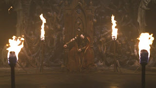 Потом авторы немножко играют в Гладиатора. У них тоже совсем ничего не получается. Под конец мы видим главнозлодейского колдуна на троне и с дредами. Он головушку-то поднимает...