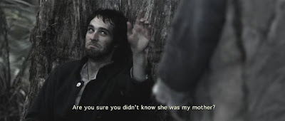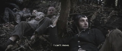 Снятые простенько и неизобретательно, сцены с героями то и дело прерывает медленно летящая над лесами камера и голос за кадром, произносящий многозначительно расплывчатые фразы вроде: "Голод - это странное молчание" или "четверо безбожных мужчин идут к дьяволу". Все это вместе с религиозными символами живет какой-то своей жизнью и слабо связано с самим сюжетом. В рецензии на "Вальгаллу" я писал, что в фильме нет эстетики, но по сравнению с "Землей" ее там просто завались, в каждом кадре. "Вальгалла" была триллером про возникновение религии среди людей, схожая в чем-то "Черная смерть" - псевдомистическим приключением, в котором религиозная тема была частью сюжета. "Земля Ван Димена" же просто претенциозно аскетичное упражнение, конечно завоевавшее кучу фестивальных наград.