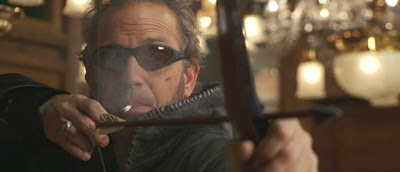 Для еще большего усиления ностальгии по крутым парням, здесь появляется Ice-T, стреляющий вверх ногами из автоматов с двух рук:) Кульминационная сцена - Костнер передает привет Арни, расстреливая полицейские машины (да и самих полицейских) через окно из пулемета.