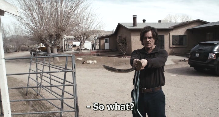 Так о чем собственно фильм? Главный герой Брэд (возможно лучшая роль Шеннона наравне с "Дорогой перемен") съездил в Перу, слегка рехнулся, потом слишком вжился в театральную античную роль и убил свою мать мечом. Половина фильма - окруженный копами дом героя, в котором он заперся с эээ... заложниками, а вторая флэшбэки, раскрывающие степень его сумасшествия.