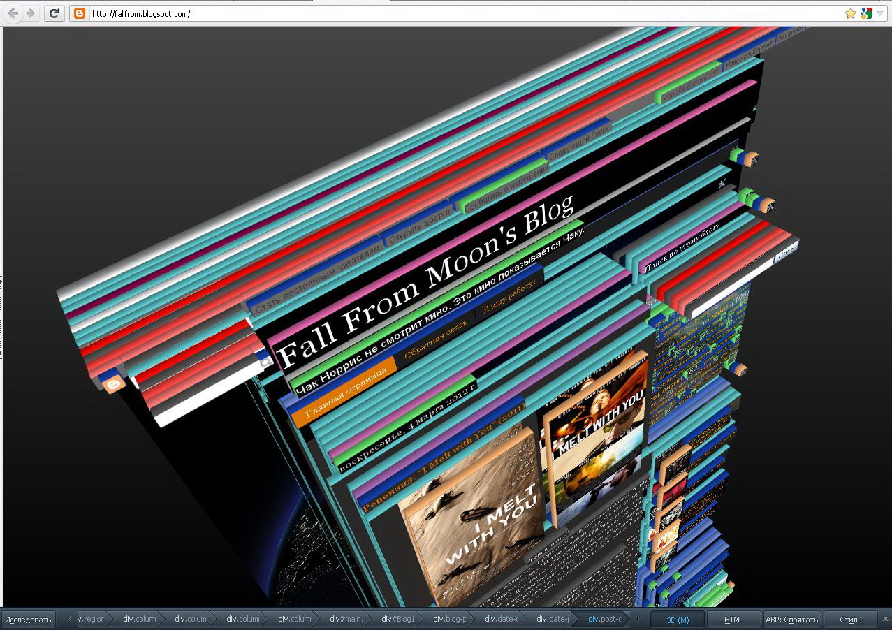 Вот такую вот "виртуальную реальность" можно визуализировать из любого сайта при помощи последних версий Firefox (кажется с 11-ой). Для этого нажмите ПКМ > Исследовать элемент > кнопка 3D на нижней панели.